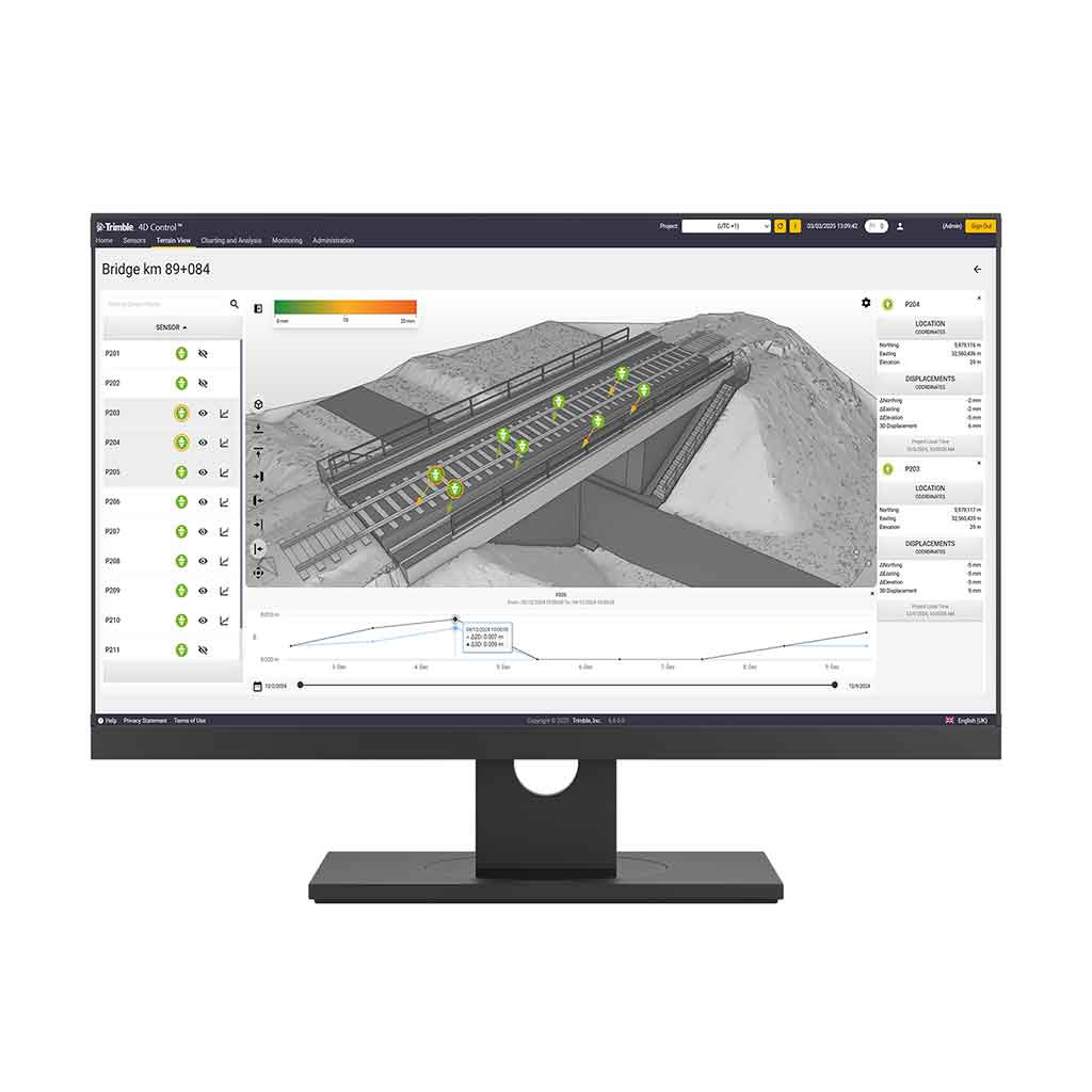 Trimble Monitoring Systeme ermöglichen die bessere Beurteilung des Bauwerkszustandes, wodurch die Lebensdauer oftmals erheblich verlängert werden kann. Darüber hinaus wird Sicherheit durch frühzeitige Warnungen gewährleistet. Statikern und Ingenieuren stehen die Daten in Echtzeit über Web-Präsentationen zur Verfügung. Eine Weitergabe der Daten in andere Programme (z.B. Finite Elemente Berechnungen) ist einfach möglich.