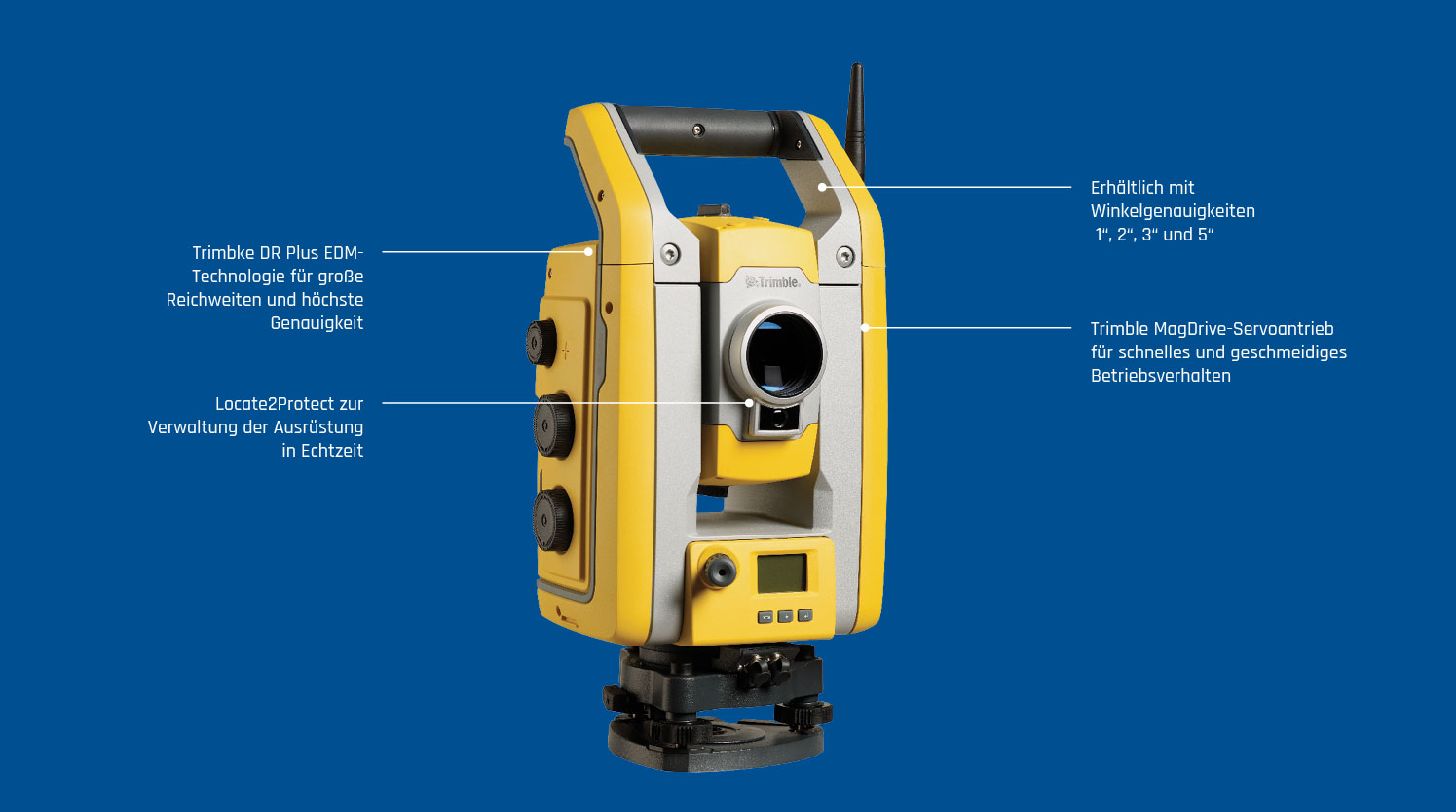 Basierend auf bewährten Trimble-Technologien wie der Trimble SurePoint- und MagDrive™-Technologie sowie unserer DR Plus EDM funktioniert dieses kompromisslose Arbeitstier effizient und zuverlässig mit höchstmöglicher Genauigkeit.