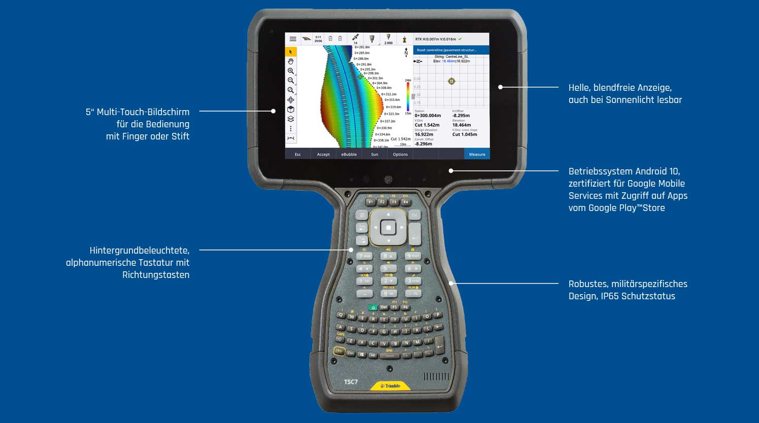 Robuste, handliche und intuitiv bedienbarer GNSS-Rover mit Neigungskompensation