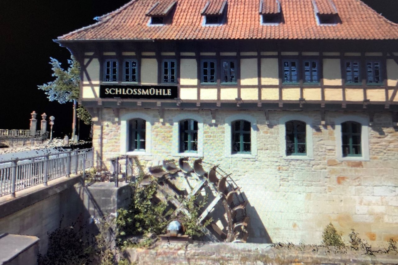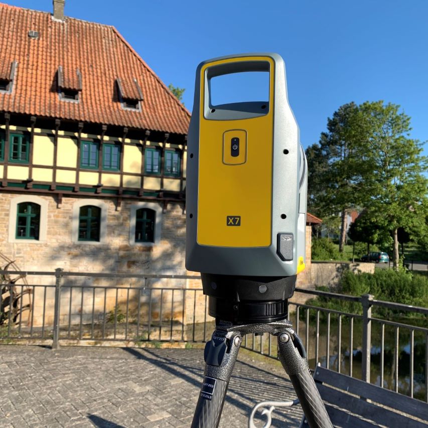 Sei es, dass er im Wasser stehend eine Fischtreppe scannt, einen sanierungsbedürftigen Friedhof samt Gräbern oder eine ganz gewöhnliche Fußgängerzone vermisst – wo immer Niels Flick von der Flick Ingenieurgemeinschaft das Aufmaß nimmt, hat er seinen Trimble® X7 dabei. «Geht es um Bestandsdokumentationen, gibt es für mich keine Alternative mehr zu unserem Scanner. Ich nehme damit schnell und umfassend alle Punkte auf, die es für die Erstellung des digitalen Zwillings des jeweiligen Bauwerks und damit für die Klärung der Situation braucht.» Nebst der hohen Genauigkeit und der großen Informationstiefe der Scans gibt es für Niels Flick weitere Gründe, die den X7 für ihn zum unverzichtbaren Vermessungswerkzeug machen: Kompakt und leicht ist dieser, passt in einen Rucksack und macht so jeden Anwender mobil. «Im Rahmen eines Auftrags musste ich das Aufmaß einer alten Mühle samt Mühlblättern erstellen. Meine ausgewählten Aufnahmepositionen konnte ich nur mit einer Kletterpartie über ein Brückengeländer und einem Balanceakt auf der Mauer entlang des Mühlgrabens erreichen. Ohne die Möglichkeit, den Scanner dabei zu schultern, wäre das nicht zu schaffen gewesen.»